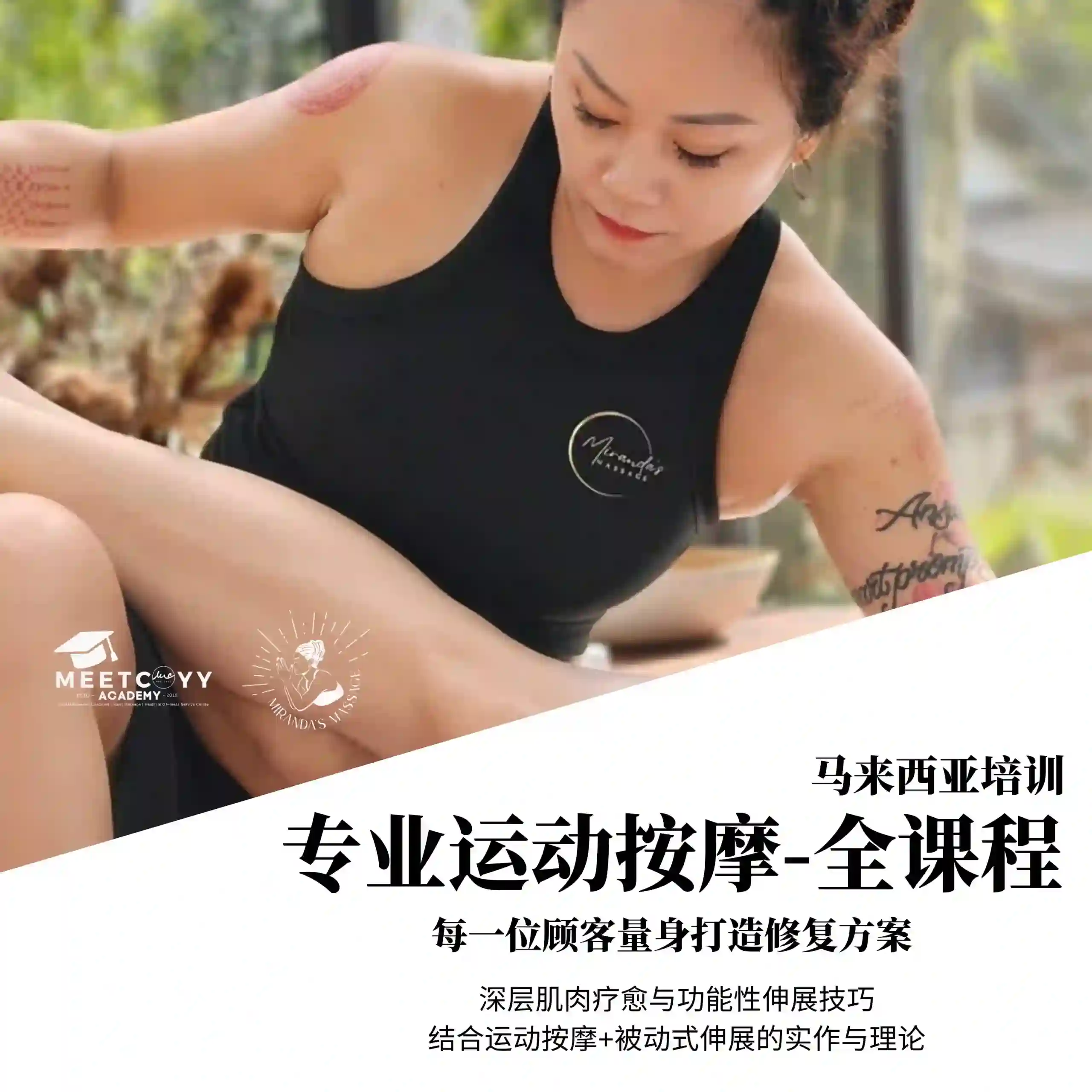 - 触诊与力道控制:如何找到正确肌肉;力道拿捏原则;不借力的上半身操作技巧;颈肩放松·胸背筋膜放松;下半身操作:臀肌与髋关节放松、腿部放松技巧。